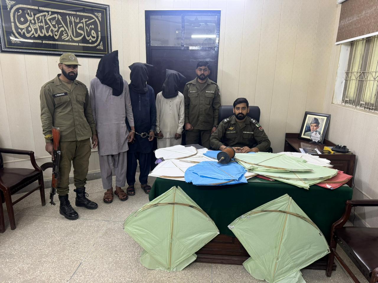 گرفتار افراد میں احسن رفیق، ابو سفیان اور عبدالرحمن شامل ہیں، جن کے قبضے سے 54 پتنگیں اور دھاتی ڈوریں برآمد کی گئیں۔ پولیس نے ملزمان کے خلاف الگ الگ مقدمات درج کر کے مزید تفتیش شروع کر دی ہے۔