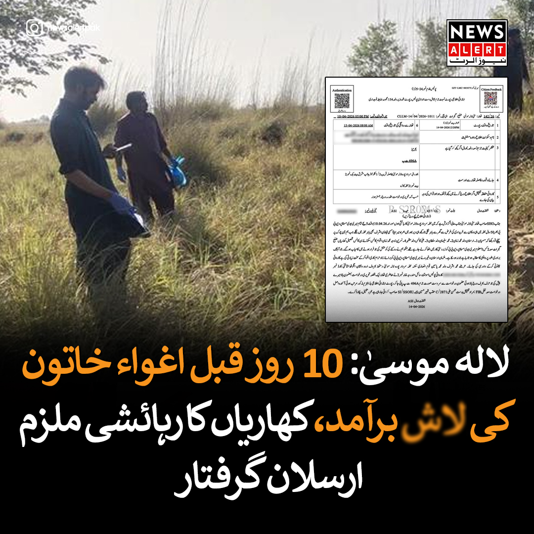 لالہ موسیٰ کے علاقے سردرا پورہ سے 10 روز قبل اغواء ہونے والی خاتون کی لاش کھیتوں سے برآمد کر لی گئی ہے، جس کے بعد علاقے میں شدید تشویش پائی جا رہی ہے۔