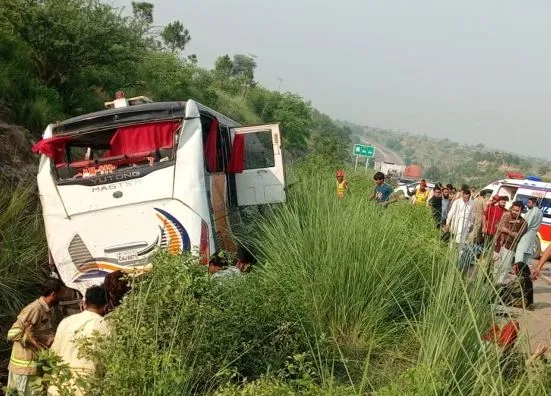 چکوال کے علاقے تلہ گنگ میں ایک افسوسناک ٹریفک حادثہ پیش آیا جہاں مسافروں سے بھری بس گہری کھائی میں جاگری، جس کے نتیجے میں 5 افراد جاں بحق جبکہ 27 مسافر زخمی ہوگئے۔