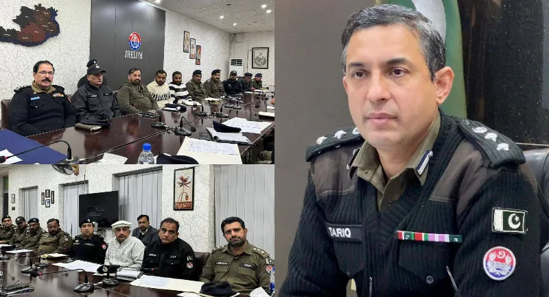 جہلم: ڈسٹرکٹ پولیس آفیسر جہلم طارق عزیز سندھو کی زیرِ صدارت ڈی پی او آفس جہلم میں ایک اہم میٹنگ کا انعقاد کیا گیا، جس میں ایس ڈی پی اوز، ایس ایچ اوز اور ڈی پی او آفس کی مختلف برانچز کے انچارج افسران نے شرکت کی۔