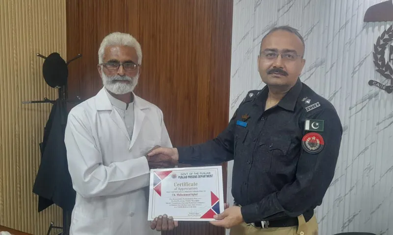 تفصیلات کے مطابق جہلم کی ڈسٹرکٹ جیل میں قیدیوں کی صحت اور فلاح و بہبود کے لیے نمایاں خدمات انجام دینے پر ہومیو پیتھک فزیشن چوہدری محمد اقبال کو جیل انتظامیہ کی جانب سے تعریفی سرٹیفکیٹ سے نوازا گیا۔