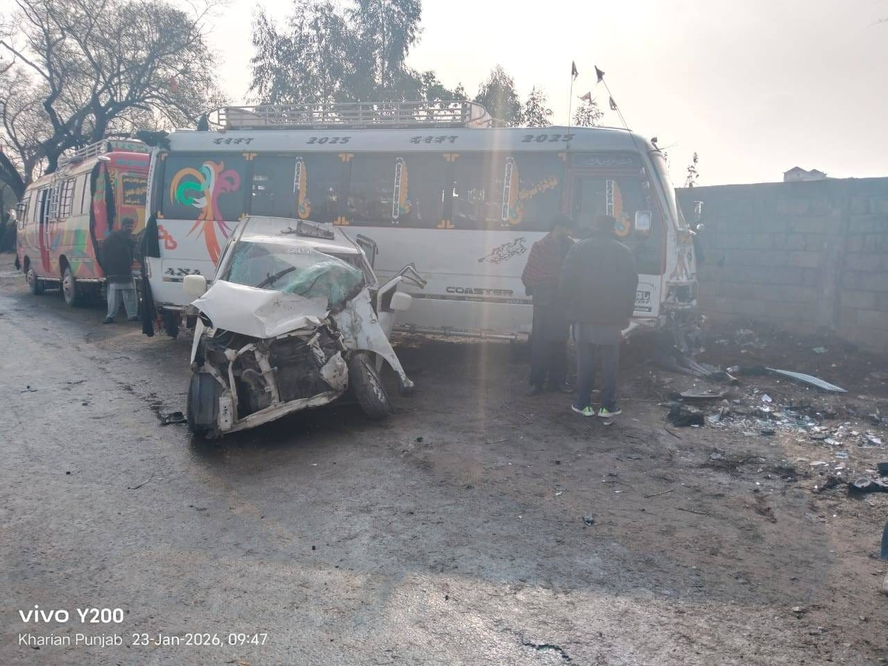 گجرات کے علاقے کھاریاں میں بسم اللہ چوک گلیانہ روڈ کے قریب سوزوکی ویگن آر کار اور ایک منی مزدا بس کے درمیان ٹریفک حادثہ پیش آیا۔