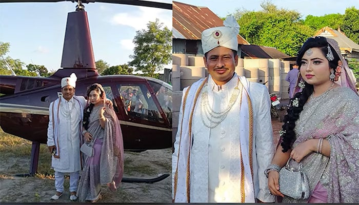 بنگلادیش سے دلچسپ خبر آگئی ہے جہاں 39 سالہ کامِل حسین نے اپنی پہلی بیوی کے چھوڑ کر جانے کے بعد اپنی نئی دلہن نُوپور اختر کو شادی کے دن ہیلی کاپٹر میں گھر لے آ کر سب کو حیران کر دیا۔