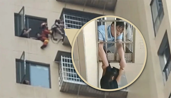 خاتون وو یومے (Wu Yumei) اپنے اپارٹمنٹ کی 14ویں منزل پر رات کے کھانے کی تیاری میں مصروف تھیں کہ اچانک ایک زور دار آواز نے ان کی توجہ اپنی جانب مبذول کی۔ کھڑکی سے جھانکنے پر انہوں نے دیکھا کہ ایک ننھی بچی 13ویں منزل کی کھڑکی کے چھجے سے لٹکی ہوئی ہے۔