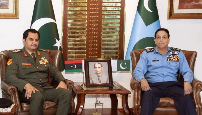 پاکستان اور لیبیا کے درمیان دفاعی تعاون کے فروغ کی کوششوں کے سلسلے میں ایک اہم پیش رفت سامنے آئی ہے، جس کے تحت لیبیا نے پاک فضائیہ کے آپریشنل تجربے اور پیشہ ورانہ مہارت سے استفادہ کرنے میں گہری دلچسپی ظاہر کی ہے۔ اس سلسلے میں نائب کمانڈر اِن چیف لیبیا لیفٹننٹ جنرل صدام خلیفہ حفتر نے ائیر ہیڈ کوارٹرز کا دورہ کیا، جہاں ان کی ملاقات سربراہ پاک فضائیہ ائیر چیف مارشل ظہیر احمد بابر سدھو سے ہوئی۔ ملاقات کے دوران دو طرفہ دفاعی امور، پیشہ ورانہ تعاون اور باہمی دلچسپی کے مختلف پہلوؤں پر تفصیلی تبادلہ خیال کیا گیا۔