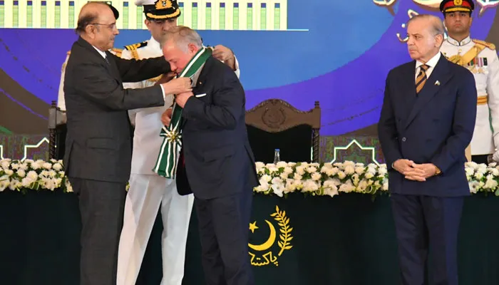 صدر مملکت نے اردن کے شاہ عبداللہ کو اعلیٰ ترین سول ایوارڈ نشان پاکستان سے نواز دیا