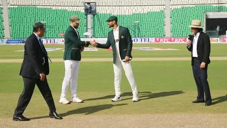 پاکستان نے جنوبی افریقہ کے خلاف دو میچوں پر مشتمل ٹیسٹ سیریز کے پہلے ٹیسٹ میں ٹاس جیت کر بیٹنگ کا فیصلہ کیا ہے۔ میچ کا آغاز آج پاکستان میں ہوم گراؤنڈ پر ہوا، جہاں کنڈیشنز کو دیکھتے ہوئے قومی ٹیم نے بیٹنگ کو ترجیح دی۔
