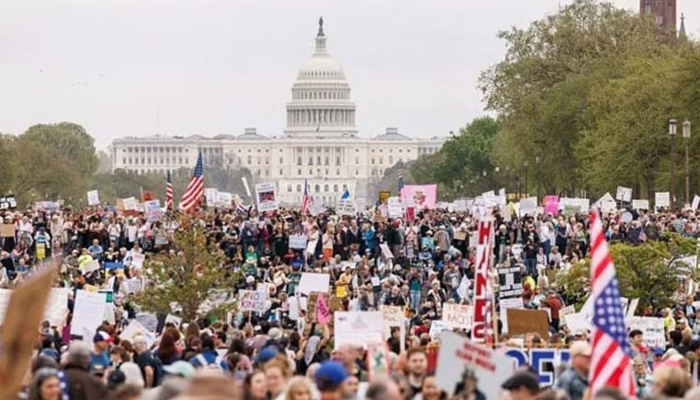 واشنگٹن، امریکی صدر ٹرمپ اور ایلون مسک کیخلاف ’’ ہینڈز آف‘‘ احتجاجی تحریک کا آغاز ہوگیا۔
